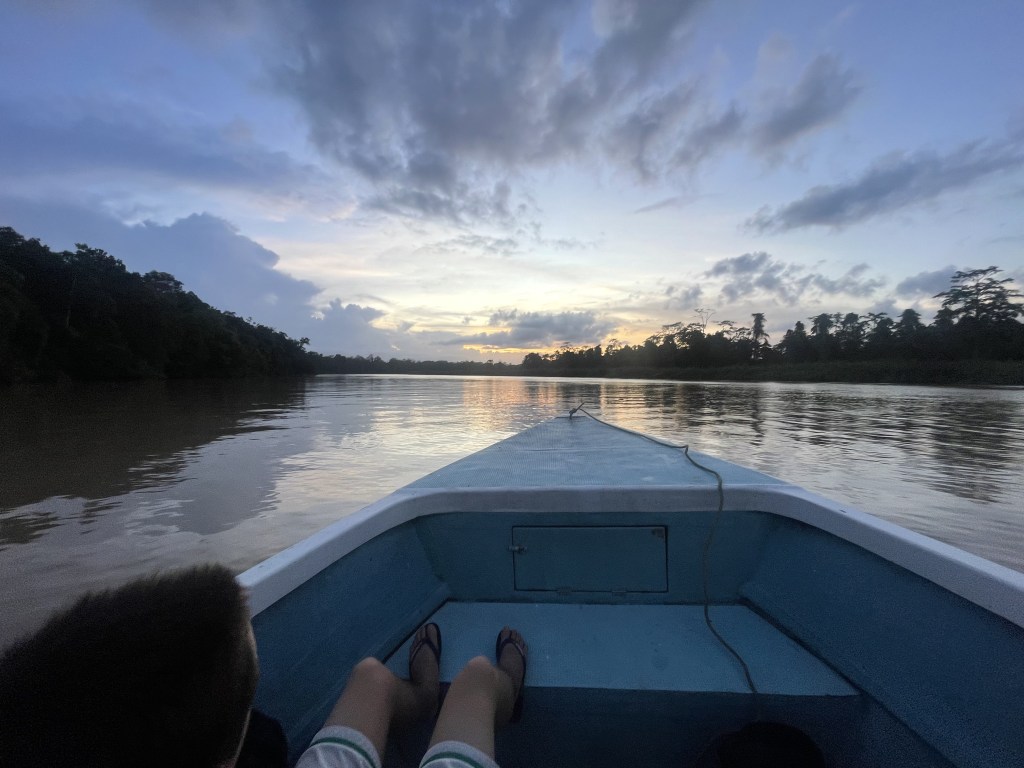 The trip then took in 5 days of river safaris on the Kinabantangan River where we celebrated perhaps the strangest Christmas of our lives. We saw a long list of wildlife including lots of macaques and 4 of the so-called Big-5 namely Proboscis Monkey, Rhinoceros Hornbill, Estuarine Crocodile and on Christmas Day a truly wild Orangutan. Our days were spent following a rigid itinerary of river safaris and meal times and then hiding in our little air conditioned hut to escape the heat and humidity.